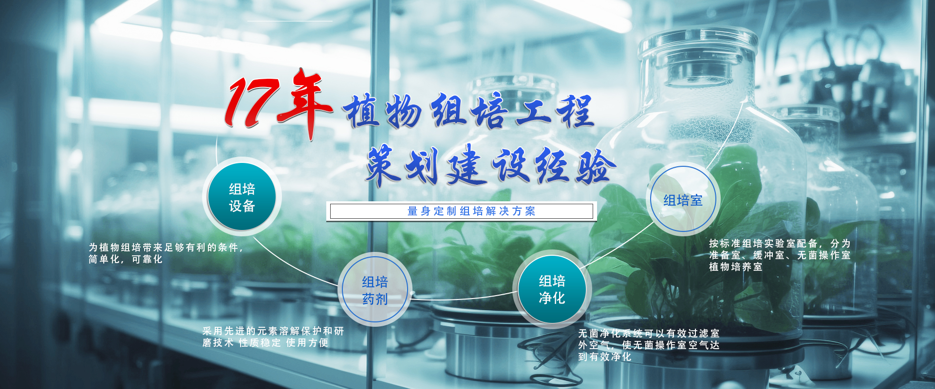 我們一直致力于組培室的科技實用與節能創新的組建融合,無論您 是批量生產、高??蒲?、教學展示等用各種形式展示您的實力與形象。